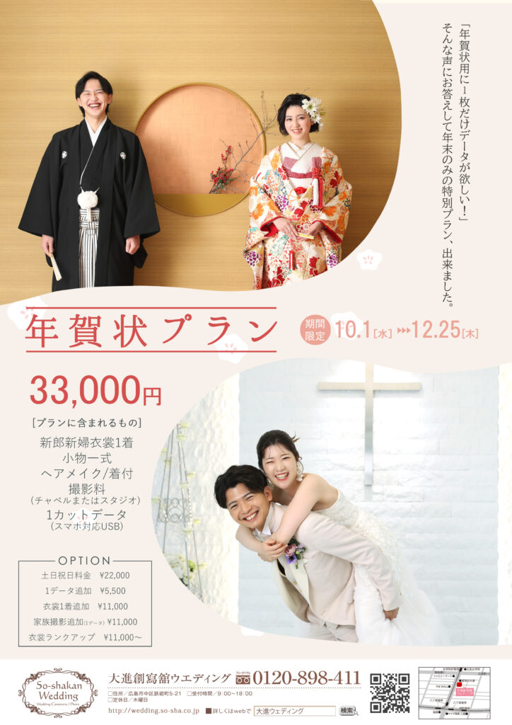 「年賀状用に1枚だけデータが欲しい!」 そんな声にお答えして、10月1日(水)~12月25日(木)の期間限定で【年賀状プラン】が登場しました☆